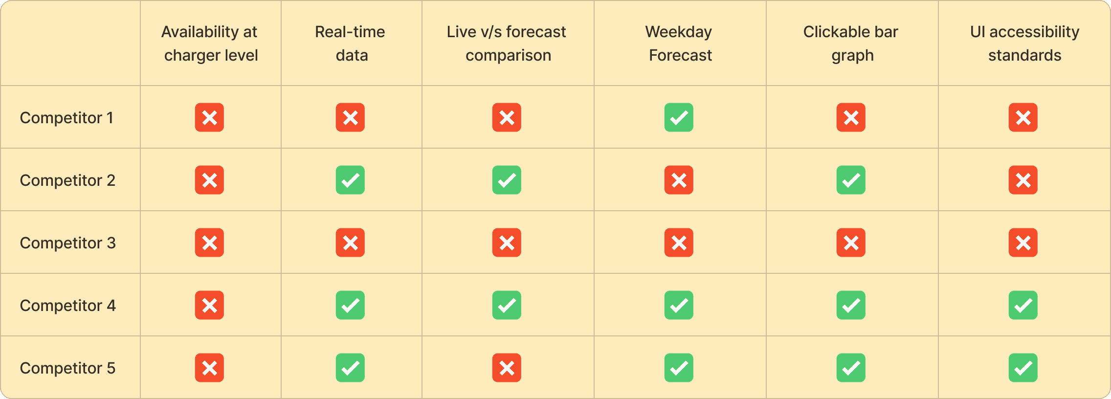 None of our competitors showed real-time availability forecasting at the individual charger level