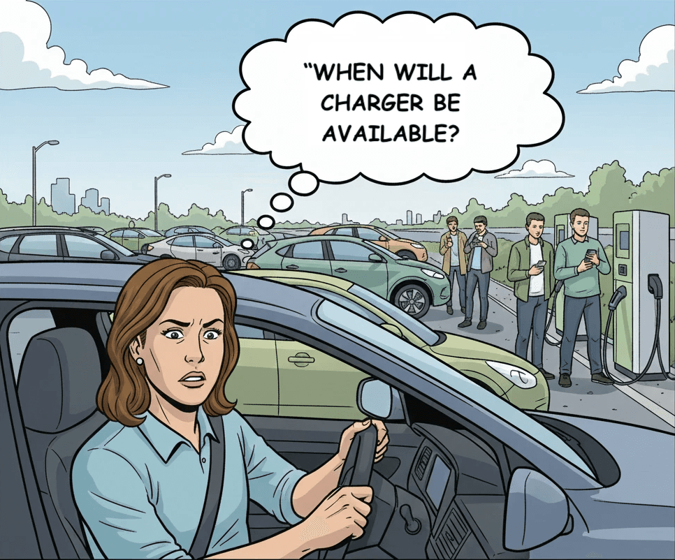 Drivers arriving at stations only to join queues, with no way to know when a charger would become available.