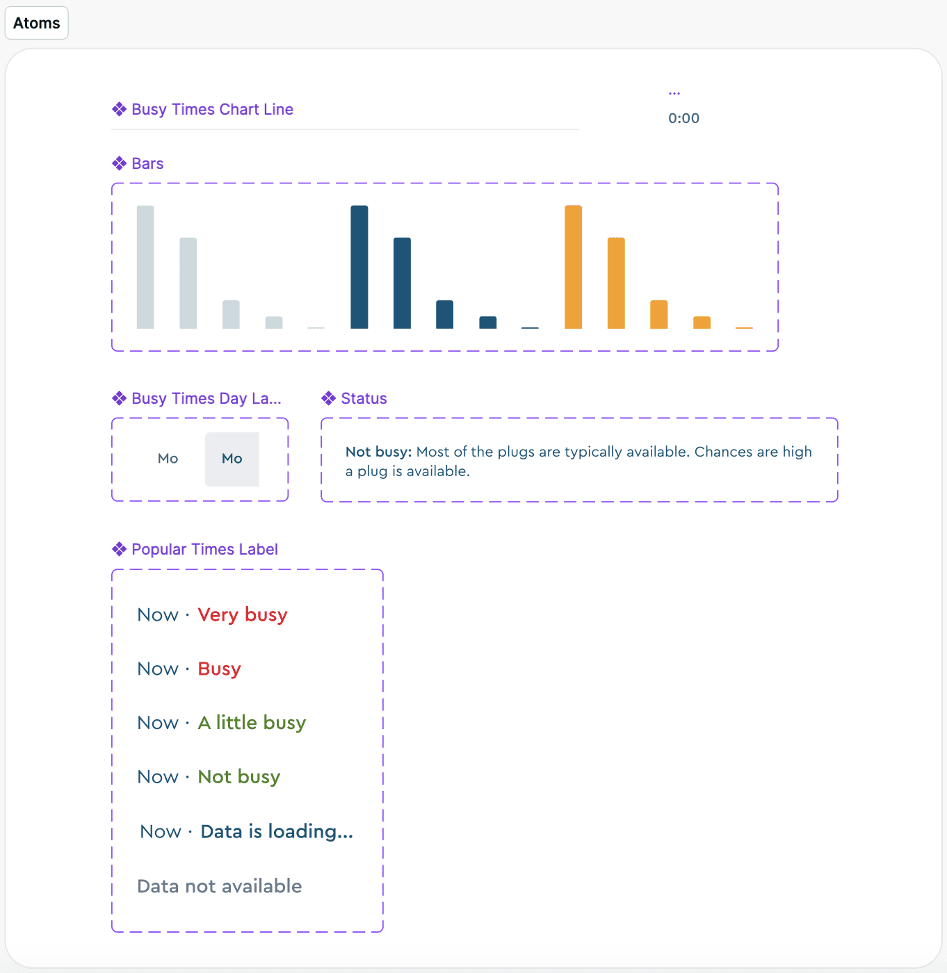 Atoms: Individual hour bars, status indicators, tabs, timestamps
