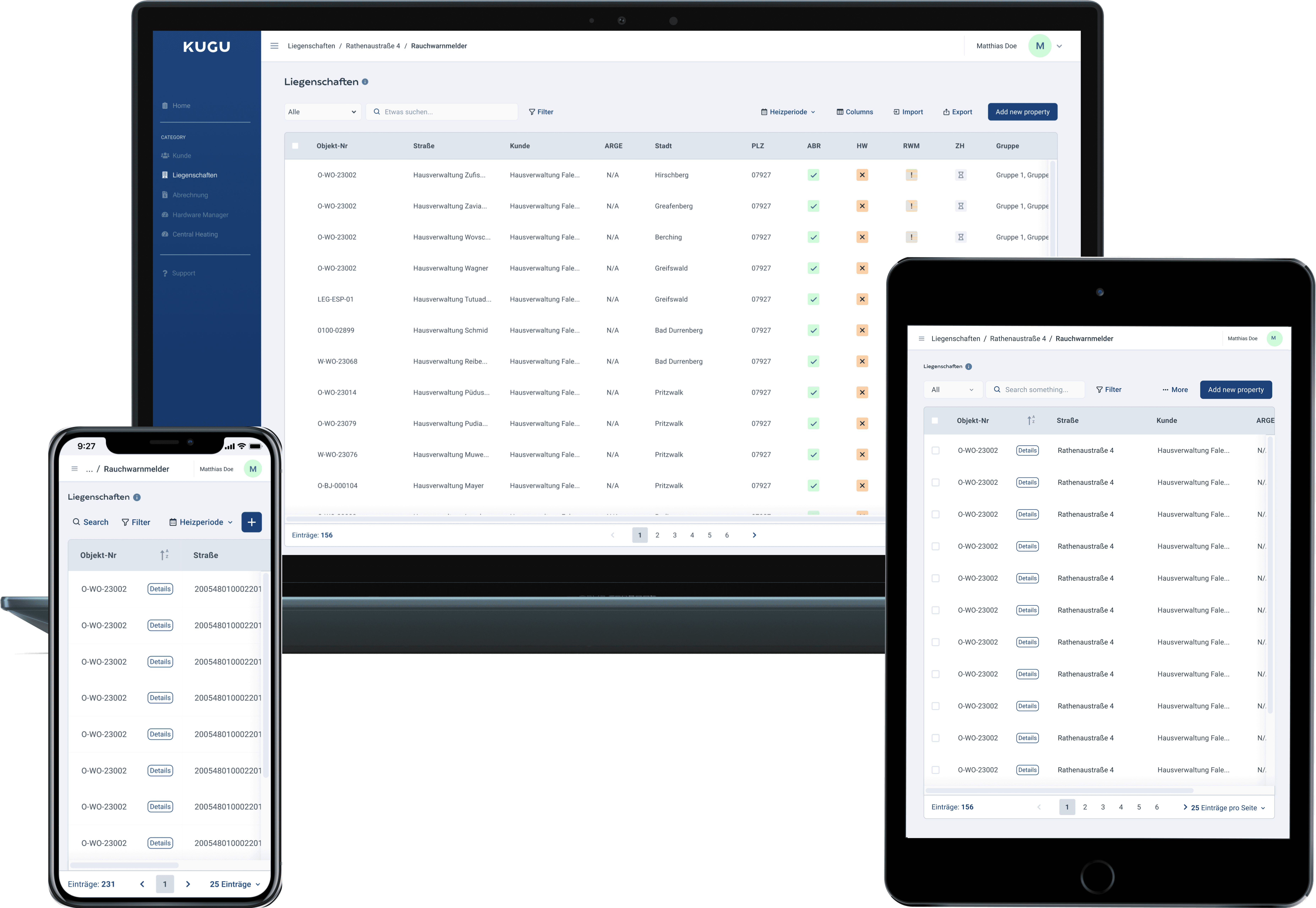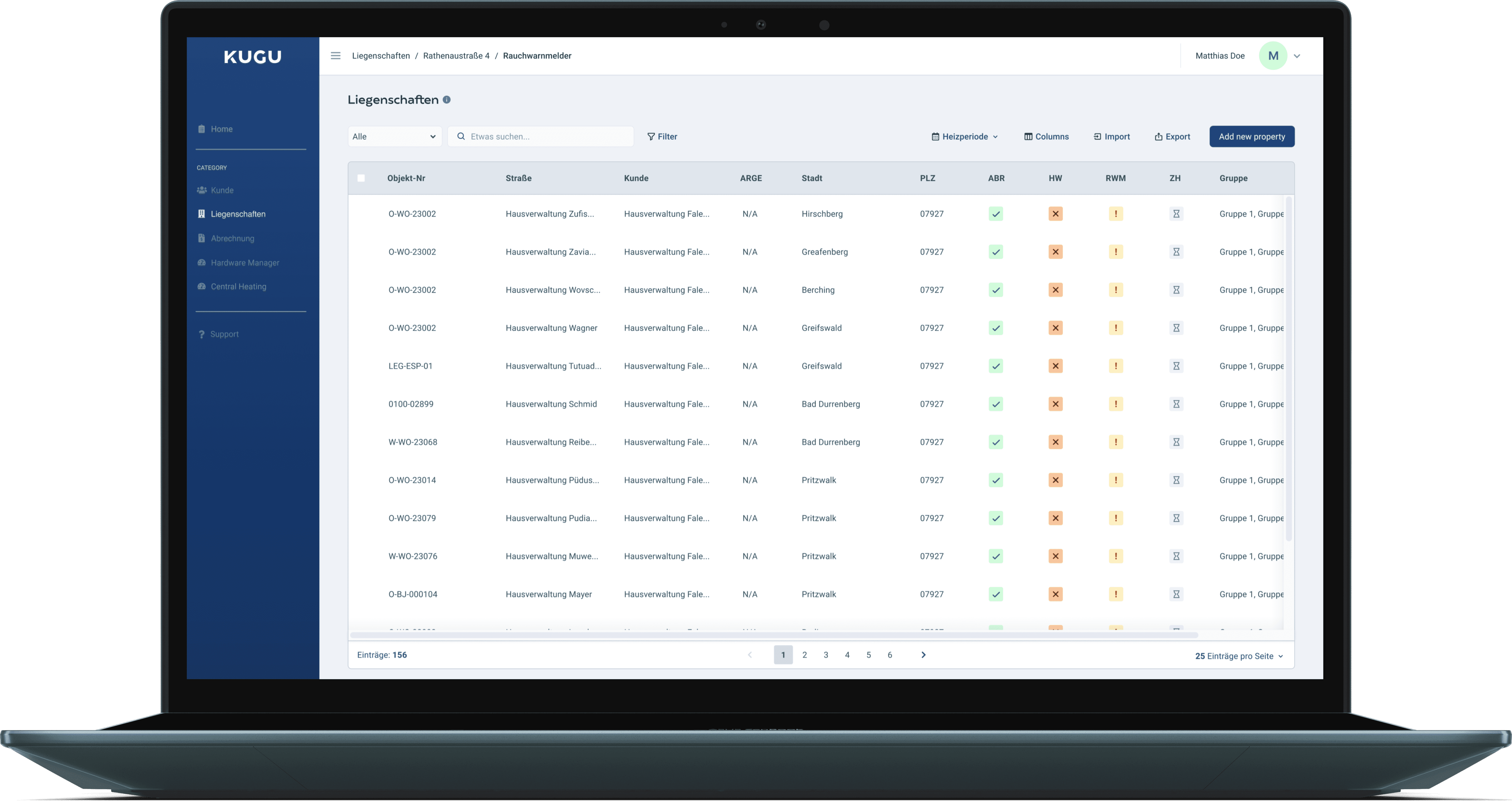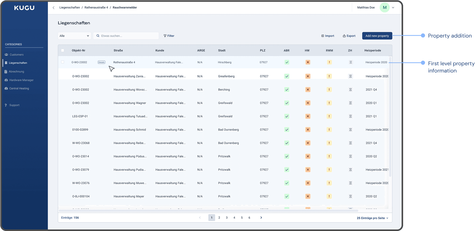 Objekt Nummer is important while referencing building numbers. Each row contains a building that, when clicked, leads to a property detail page that describes the nitty-gritty of the building to prepare for billing.