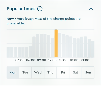 Users can explore availability across the entire week, perfect for planning ahead or identifying consistently quieter times.