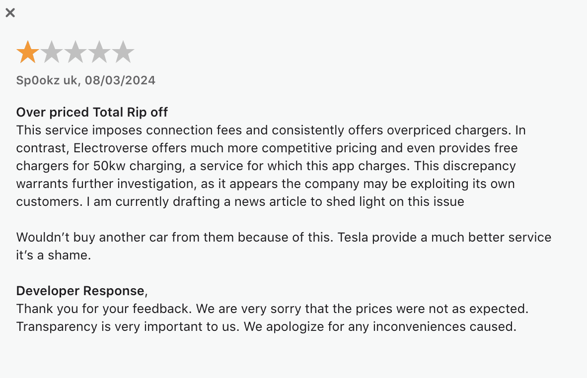 Competitive chargers on the same screen didn’t show cost differences