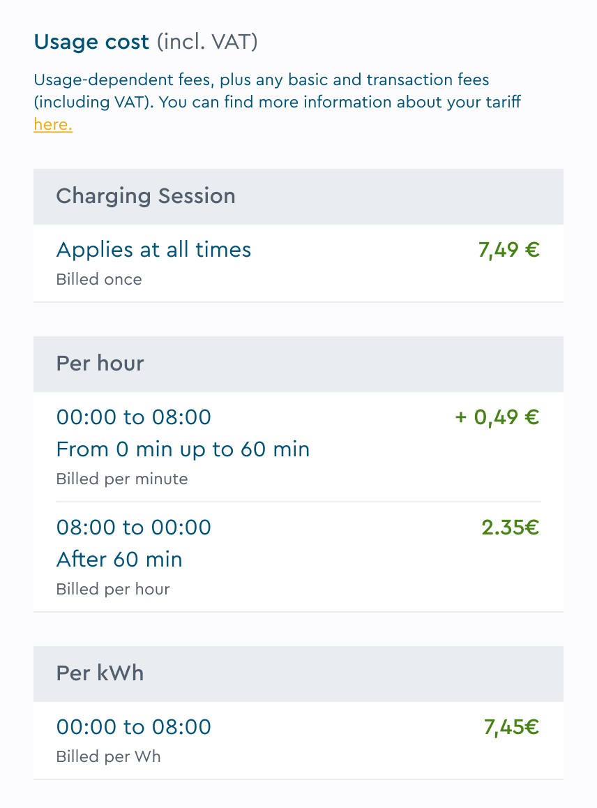 Each charger detail now shows a clean, modular price breakdown with clear labels and consistent structure.